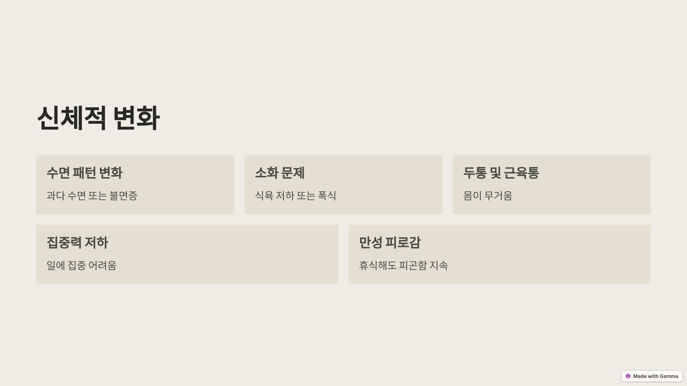 이러한 상태가 지속되면 업무 효율성 저하, 사회적 관계 위축, 그리고 전반적인 삶의 질 하락으로 이어질 수 있습니다.