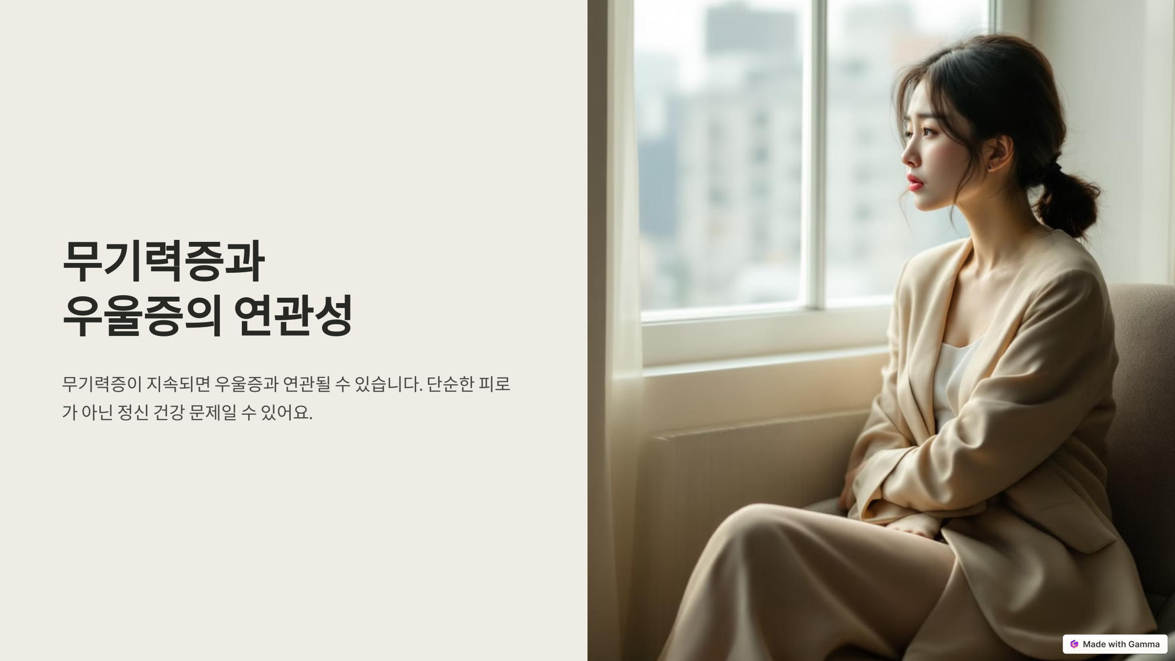무기력증은 현대인들이 흔히 겪는 문제지만, 이것이 우울증의 신호일 수 있다는 사실을 알고 계셨나요? 이 글에서는 지속적인 무기력증과 우울증의 관계, 그리고 이를 극복하기 위한 실질적인 방법들을 전문적으로 알아봅니다.